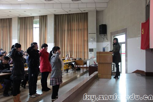 法学院2010级新党员宣誓大会于3月8日中午在文潭楼邓析堂隆重举行。法学院10级党总支书记袁桂君老师,10级辅导员周尧老师、张今柯老师以及10级全体党员和入党积极分子参加了本次宣誓大会,张今柯老师担任本次大会的主持人。