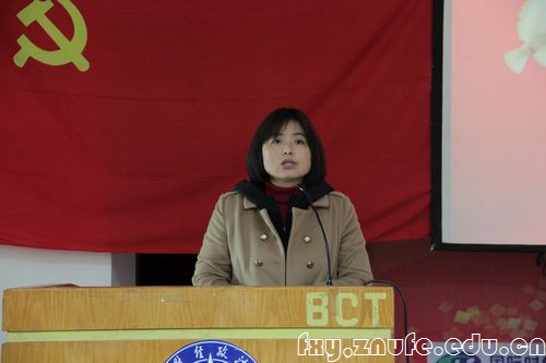 宣誓完毕后,法1004班的魏晨雪同学代表新党员发言。她在发言中感谢了10级党总支的辛勤培养,表达了为党的事业终身奋斗的决心,同时还给台下的入党积极分子提出了建议。1007班的袁野同学紧随其后代表优秀党员发言,与大家分享了他作为学生党员的经验与收获。随后,代表入党积极分子发言的1001班刘理凡同学在发言中表达了对党组织的无限向往和争取早日加入党组织的决心。最后,10级党总支书记袁桂君老师发表讲话,她先是对新党员表示欢迎和祝贺,然后对新老党员都提出了具体要求,希望他们时刻牢记自己的党员身份,充分发挥先锋模范作用,保持共产党员的先进性。