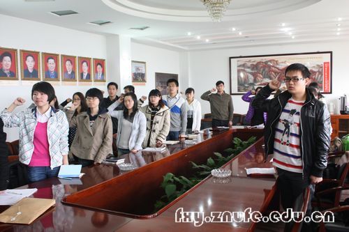 “我志愿加入中国共产党,拥护党的纲领,遵守党的章程,履行党员义务……”面向鲜红的党旗、金黄色的党徽,法学院2010级全体党员用铿锵有力的声音,重温入党誓词,作出一份掷地有声的承诺。在庄严肃穆的氛围中,法学院2010级学生党建办公室正式成立。