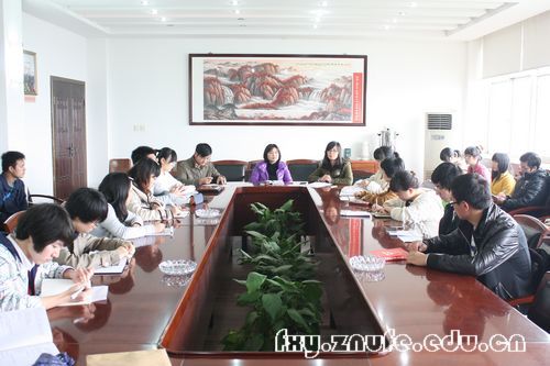 3月30日中午,法学院2010级学生党建办公室成立大会暨创建先进基层党组织动员大会在文治楼六楼会议室举行。2010级党总支书记、院学办主任袁桂君老师和2010级党总支组织委员周尧老师出席会议。会议由2010级党总支宣传委员张今柯老师主持。