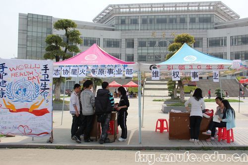 本次活动分为无手模拟、猜词、写寄语三个环节。尽管艳阳高照,帐篷前面还是汇集了很多驻足观看的同学,志愿者们也热心地协助同学们参与活动。在无手模拟环节中,本应是同学们不借助手来剥开糖果,有很多同学却用手腕将糖果夹住,然后用嘴巴咬开糖果纸,滑稽的动作引得现场笑声连连。猜词环节同样是笑点不断,同一个动作不同的同学却猜出了许多令人啼笑皆非的答案。原本空荡荡的展板也被一个个写满同学们感想的便利贴填满,小小的帐篷下满是欢乐的笑声。志愿者向记者介绍道:“手是我们生活中使用最频繁、和外界接触最多的人体重要部位,也是最易疲劳、接触病菌最多的部位,但手也是最易被忽视护理和清洁的部位,我们办这次活动也就是为了让同学们更多地了解保养和护理手部的知识,从而提高同学们的健康意识。”
