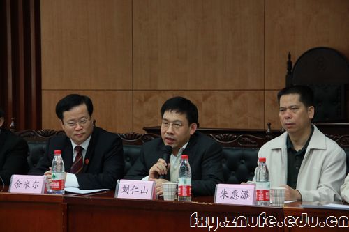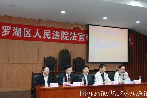 罗湖区法院副院长余米尔在讲话中对我院领导和教职工表示了感谢,并强调学界在推动司法进程尤其是立法方面的作用举足轻重。他表示,希望各位法官不仅要提高自身审判素质,并能通过此次学习感悟学习方法,感受大学精神。