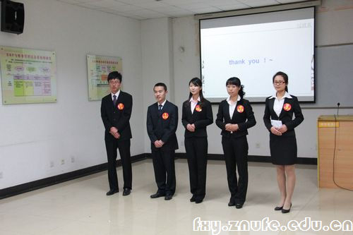 在营销成果展示时,吴楠同学随A组“花young年华”率先出场,她同搭档默契配合,结合PPT有声有色地向评委们回顾了他们在营销活动中的精彩表现。面对评委提问,她也是灵活应对,回答自如。后面出场的付开燕同学更是表现出色,不仅思路清晰地介绍了小组营销策略,而且针对评委关于“企业社会责任感”的犀利发问,将专业知识同现实案例结合,沉着冷静地表达了自己见解,提出了“企业承担社会责任与企业内部经营模式相适应”的观点,展现了良好的专业素养。她的团队以“自然心,分享爱——关注学校周边流浪宠物”为主题的公益营销策略也获得了评委一致好评。最终,付开燕同学顺利晋级决赛。