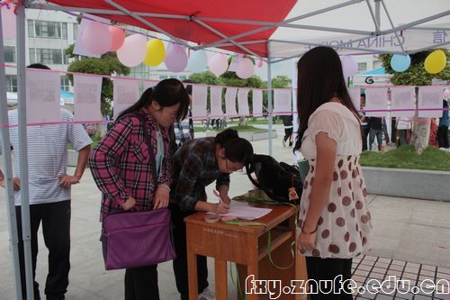 在活动现场的义卖区中,法志协还和爱心超市共同举办了爱心义卖活动,让同学提前接触义卖的物品,并提供捐助物品的登记,很多同学纷纷在登记表上填写了自己所捐助的物品信息。在对一位捐助的同学的采访中,他说道:“其实包括我在内很多同学都有一份帮助别人的爱心,现在很高兴学院能提供给我们这样一个方便的平台让我们实现我们的心愿,同时我也希望更多的同学能参与到这个活动中来。”