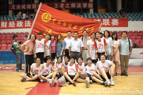 随后进行颁奖典礼,沈传茂主任和韩秦副书记分别为冠军队伍和最有价值球员颁奖。“文治武功冠中南,王者之师法学院”,雄壮的口号声响彻南湖体育馆。