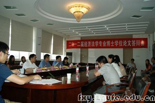 2012年5月27日上午9点,中南财经政法大学2012届经济法博士学位论文答辩会在文治六楼会议室顺利举行。