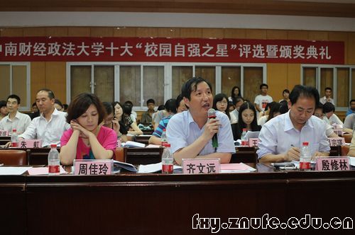 两位同学的先进事迹感动了在场的评委老师和观众,均以高分荣获2012年我校“校园自强之星”称号。齐文远副书记为他们颁发了荣誉证书。同时,法学院、新闻与文化传播学院和经济学院荣获本次活动的最佳组织奖。