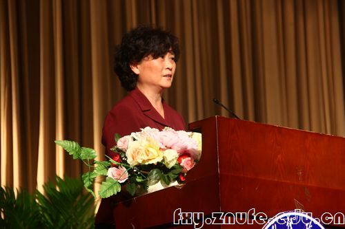 教师代表郑祝君教授在会上引导2012级新生思考“大学生活应该如何度过”以及“如何将大学生活过得有意义”两个问题。她提出了三点建议:第一,学会学习,关注社会前沿问题,成为拥有“独立之精神,自由之思考”品质的大学生。第二,完善人格,牢固树立法律理想,阳光面对生活和学习。第三,迅速找到目标、方向,并对未来有一个良好的规划。