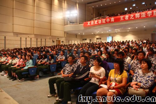 刘仁山院长还对2012级新生提出了两点希望:其一,为了中国的法治理想,也为了自身的发展,务必扬起自信的风帆,让自己的大学生活成为人生中最动人、最丰满的乐章,并通过分析唐慧案件让新生们了解到要实现法治理想,我们还有一段很长的路要走。其二,胸怀国家、民族、社会,成为中华民族伟大复兴的有用之才。他简要分析了钓鱼岛问题,强调了大学生应该具有使命感和民族责任感。他还希望同学们学会做一个文明人,珍惜同学、室友、老师,珍惜青春岁月,珍惜学习的每一天。