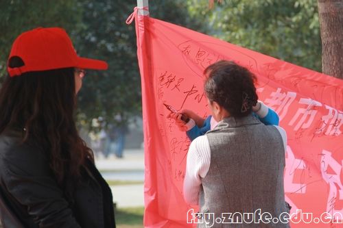此外,部分志愿者于上午来到楚河汉街参加了“告别车窗抛物”的万人签名启动仪式,并在签名板上留下了自己的名字。作为志愿者的一员,法1202班的程鹏同学说:“我们并没有想通过签名就能够杜绝车窗抛物这种行为,我们只是想尽己所能,通过活动去影响更多的人,逐渐提高大家对这种的不文明行为的关注,进而去拒绝车窗抛物。”据活动负责人介绍,法志协将会继续与楚天都市报合作,开展更多有意义的活动。