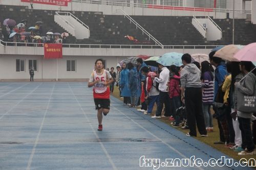 10月25日,绵绵阴雨中我院运动员王婕在女子800米竞技中一路领先,以极为明显的优势轻取冠军。