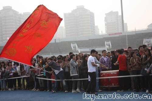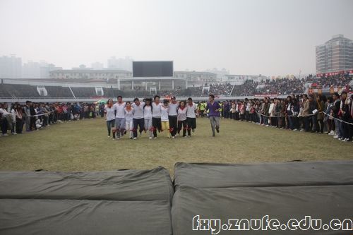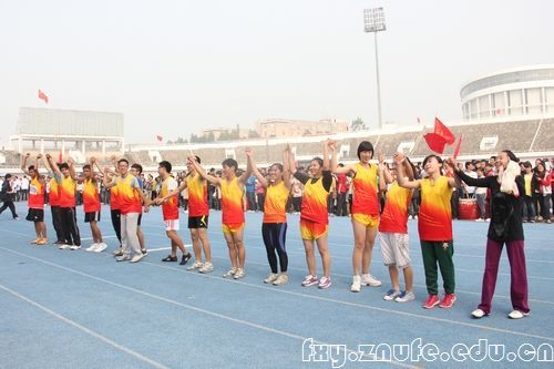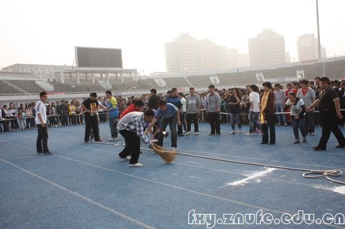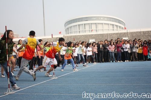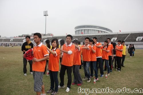 在10月26日上午的齐心协力跑比赛中,我院10级同学第二次代表法学院出战,严格的训练和默契的配合让他们在比赛中以5秒86的成绩打破记录,成功卫冕。图为他们赛前热身练习,就已经吸引了观众的全部关注的场景。