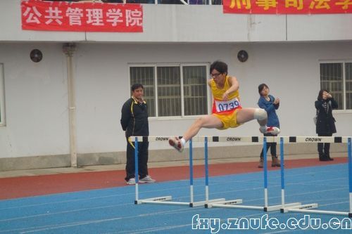 在10月26日的男子110米栏预赛中,法学院运动员唐九龙带伤参赛荣获小组第一的好成绩。运动员们的临难而上、奋勇拼搏的精神感染了在场的每一位观众。