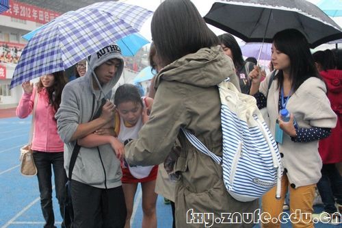 运动会场上同样活跃的还有我院可爱可敬的志愿者们,他们为运动会们提供各种贴心的服务,他们的热心、热忱和热情同样值得我们铭记。图为女子1500决赛研一刘朗坚持跑完1500米后志愿者们纷纷搀扶。