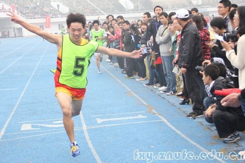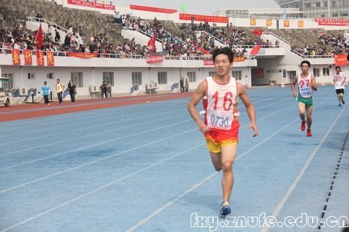运动会首日的男子5000米比赛中,我院选手李号然一路坚持跑到终点。虽然没有取得很好的名次,但是他为我们很好地诠释了永不言弃的竞技精神。