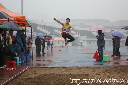 10月27日,在男子三级跳远比赛中,我院选手谭凯雨中起跳,以12.35米的好成绩夺得该项目的季军。