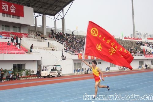 在运动会中,我院选手肖荣涛在男子5000米、3000米障碍赛中均荣获第一名。图一:在10月25日上午男子5000米长跑中我院选手肖荣涛卫冕该项目的冠军。图二:肖荣涛5000米夺冠后激动地举着法学院的旗子绕场一周。图三:在10月27日男子3000米障碍赛中,我院选手肖荣涛一直保持着自己的节奏,以领先对手一百米的绝对优势轻松折桂。
