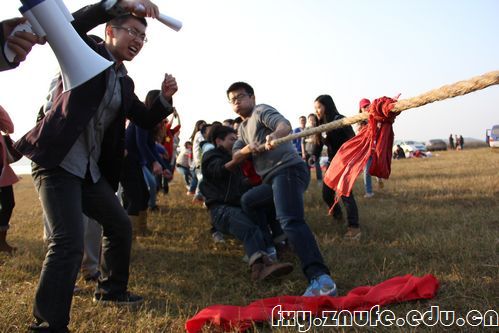 饭后,同学们在梁子湖旁分组进行趣味比赛。背靠背夹送皮球、手牵手传递呼啦圈、人员递增式往返跑,每项比赛都凸显了团队精神,考验着同学们的默契程度。最吸引人的还是拔河比赛,双方队员奋力相博,互不相让,红绳左右摇摆,扣人心弦。