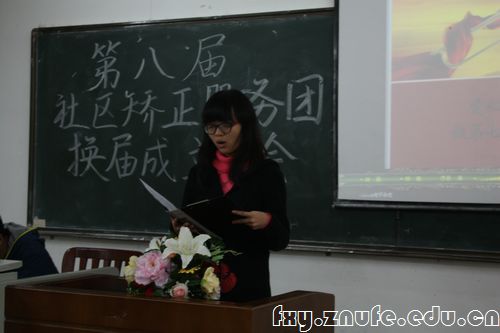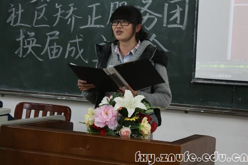 第七届服务团优秀志愿者代表陈俊霖回顾了自己从怯场忐忑到独当一面的经历,并从中总结了经验。第八届社区矫正服务团成员代表许文静和法学院志愿者协会会长颜月明也分别作了发言。