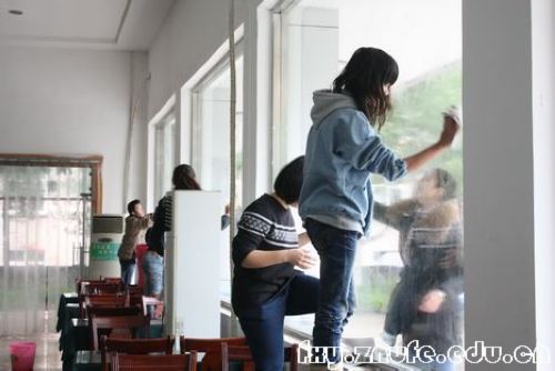本次活动的人员分为拖地组、擦窗组、擦桌椅组以及擦碗柜组,每组都有一位小组长负责安排人员和保障工作高质量完成。各成员在小组长的安排下开始工作,活动前期主要是擦碗柜和擦窗户,其余的同学帮忙提水,传报纸以及拧抹布,活动后期是擦桌椅和拖地,同学们一边工作,一边交流经验,整个活动在愉悦的氛围中进行。经过两个小时的辛苦清扫工作,食堂焕然一新,食堂工作人员也对我院志愿者的辛勤工作表示了肯定和感谢。