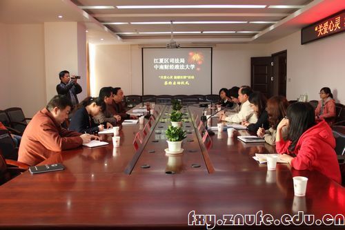 最后,蔡书记与姚局长在法学院与江夏区司法局“关爱心灵 温暖社矫”合作文件上签字并就合作细节进行了深入探讨。