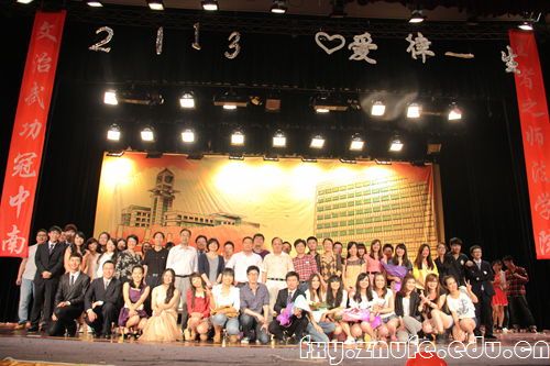 57日晚,“爱律一生”法学院欢送2013届毕业生晚会在南湖会堂举办,2013届研究生辅导员赵红老师,本科生辅导员杨永煊老师、李司铎老师与1000余名法科学子欢聚一堂,共话离别。