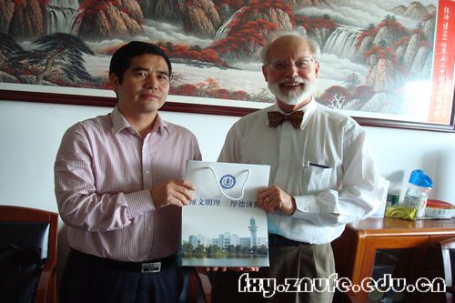讲座结束后,法学院副院长简基松教授代表方世荣院长热情接待了John C. Reitz教授,简基松副院长首先介绍了法学院的基本情况,然后就双方建立合作交流关系进行了初步探讨,最后,简基松副院长与John C. Reitz教授互赠了礼物,双方表示将进一步商讨合作交流协议及联合办学的问题。