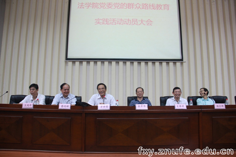 7月15日上午,法学院深入开展党的群众路线教育实践活动动员大会在文泓楼报告厅隆重召开。校党委书记张中华,第四督导组组长、会计学院党委书记肖翠祥,法学院党委书记蔡明辉,法律硕士教育中心主任杨忠辉,法学实验教学中心主任王均平出席本次会议,参加本次会议的还有法学院的各位领导以及法学院全体党员。会议由法学院院长方世荣主持。