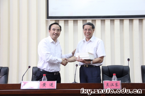 1012下午,法学院献礼“65周年校庆高端学术系列讲座第八讲在文泓楼报告厅举行,中国政法大学校长黄进教授担任主讲人,探讨中国法学教育的困境与出路。讲座开始我校校长吴汉东教授代表学校接受黄进教授赠书,本次讲座由教务部部长刘仁山教授主持,全体国际法教师出席本次讲座。