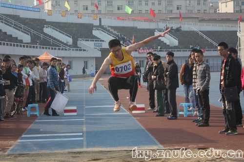 男子组三级跳远比赛,我院研究生二年级谭凯同学勇夺桂冠,本科2011余剑锋、2013级金惯禹同学分别获得第六、七的成绩。谭凯同学已连续6年参加三级跳远此次比赛以其强大的实力,助跑、腾空、跃起,一气呵成,跳出12.20米的好成绩,取得冠军。