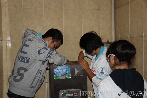 清理的过程中,不断有前来打热水的同学,志愿者们将提前准备好的热水提供给同学,并对由此带来的不便表示歉意。同学对志愿者的工作表示理解和赞同:“学校饮水机常年无人清洗,你们的活动可以使我们喝上干净的热水,我很支持也很感谢。”