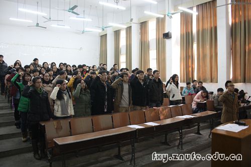 12月10日中午,法学院2011级预备党员宣誓大会在电教103教室召开,我院本科生2011级党总支组织委员、第一党支部书记曹吉安出席大会并发表讲话。大会由2011级党总支书记郝新春主持,2011级全体党员到场参加。