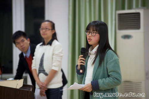 12月14日晚,由法学院团委、法律援助与保护中心共同主办的首届博雅读书论坛决赛在我校首义校区文润楼303教室拉开帷幕。法学院韩桂君副教授、周其明副教授,郭倍倍老师、湖北今天律师事务所合伙人付军律师担任嘉宾评委。经过激烈的角逐,由黄茜、张艺组成的幽茗萧蓝团队以94分摘得桂冠。