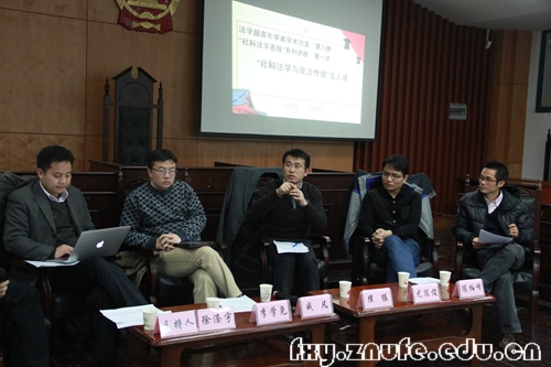 12月22日晚,模拟法庭(二)在冬至之日一片欢声笑语,“社科法学连线”系列讲座第一讲暨“社科法学与政法传统”五人谈主题讲座在此举行。上海交通大学凯原法学院李学尧教授、华中科技大学法学院成凡教授、北京大学法学院侯猛副教授、中国人民大学法学院尤陈俊副教授、中南财经政法大学法学院陈柏峰教授共同担任主讲人,中南财经政法大学法学院常务副院长徐涤宇教授主持讲座。我院理论法学系张德淼教授、武乾副教授、罗鑫博士,湖北警官学院易江波副教授,华中农业大学文法学院狄金华博士,《法商研究》王虹霞博士到场聆听讲座。