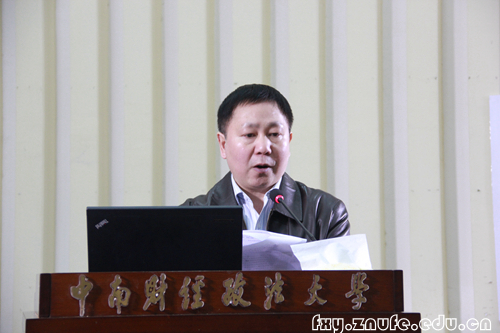 杨灿明教授在致辞中提到冲击“6个高地” ,着力打造现代新型国内知名国际影响的一流大学的奋斗目标。他说,创设“法治中国”大讲堂,其目的在于搭建学科协同、校校协同、校地协同、学校与国际知名专家协同的新型教学科研创新平台,提升学校的核心竞争力和国际影响力,打造现代新型一流国内知名、国际影响的大学,助推法治中国建设。杨灿明教授表示“法治中国”大讲堂将作为我校教学科研深度融合、院系协同创新的一个高端平台与亮点工程来抓,希望大讲堂取得更多、更好的成果,为实施依法治国方略、建设法治湖北作出更大的贡献。