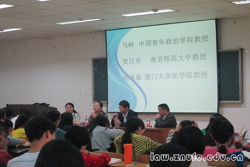 4月11日下午,在我校首义校区文润楼303教室举行了一场别开生面的宪法学学术讲座。本次讲座的主题是:“用宪法观察世界。”中国青年政治学院马岭教授、南京师范大学贺日开教授和厦门大学法学院刘连泰教授受邀担任本次讲座的主讲人。我校法学院副院长胡弘弘教授担任本次讲座的主持人。几位老师慷概激昂的讲述,让现场的同学们热情高涨、备受启发。