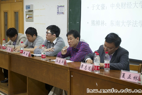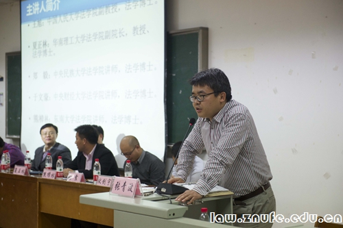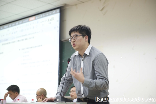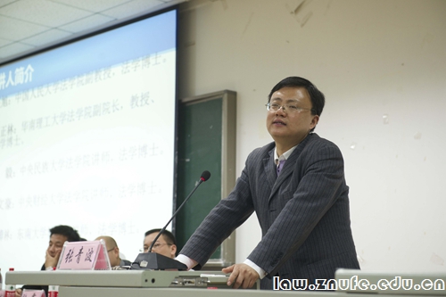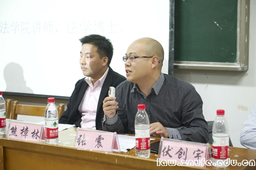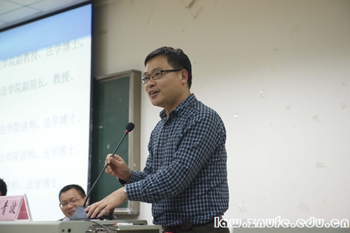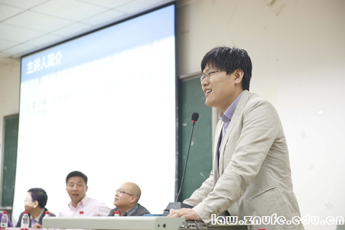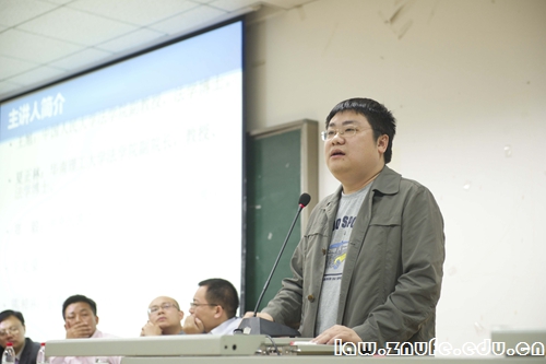 讲座开始,张青波副教授逐一介绍了在座青年才俊的学术背景和经历,幽默的介绍风格引起现场掌声连连。开场白后,章志远教授以他自身的经历为依据与现场法学学子进行了相关行政法学的探讨。章教授首先讲述了在面对行政法学不太受欢迎的现状下,如何把优秀的学生召集到行政法的研究中。接着,章教授简明地阐述了由其个人总结的目前案例学习研究存在的一些局限性,并阐明了案例在法学学习研究中的重要性,鼓励更多的法学学子投身于行政法学的学习研究中。