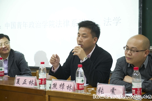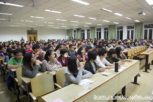 在汪教授的精彩发言之后,夏正琳教授以一个全新的视角向大家深入地剖析公法学,阐述了公法思维的重要性。为了使在座学子更好地明白,夏教授分别从民法思维和公法思维的区别,公法对生活的影响等多重角度来论证,其精彩的演讲,诙谐幽默的语言赢得了在场学生的数次掌声。