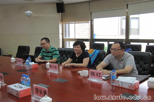 2014年7月23日下午,我院黎江虹副院长、张红副院长和张忠民副教授前往东莞市第三人民法院,与我校校友东莞市第三人民法院副院长陈浩辉、民三庭庭长杜锡恒、政工科主任黎长勇等法院相关领导同志举行座谈会,并亲切看望了正在法院实习的我院学生。