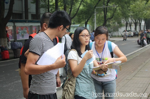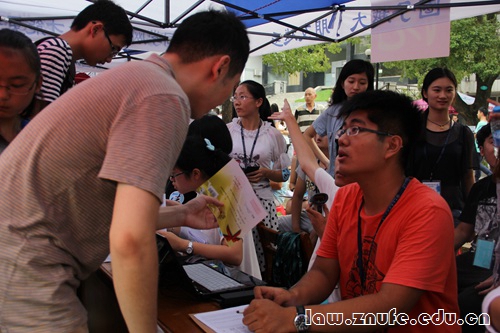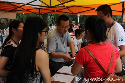 法学院党委副书记袁桂君老师、学生办公室主任郝新春老师、分团委书记李晓老师、副书记王瑄老师一大早就赶到了首义校区,指导志愿者们的迎新工作。在新生到来之后,他们细心地解答新生们的问题,给予新生们帮助,与新生家长交流,了解家长们对孩子们的期望, 打消家长们的担忧,给家长一颗“定心丸”。