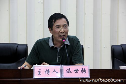 温世扬教授介绍了许明月教授的求学经历、研究方向和学术成就,他用教授、院长、主编三个名词来描述许老师身份,特别强调,许教授在从事经济法教学与科研的同时,在民商法领域也颇有建树,曾发表多篇论文,获得过多个省部级奖项,表明许明月教授研究领域宽广,学术造诣深厚。