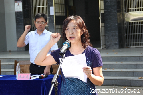 “我既中南大法律人,必以诚信为本,宽容为则;活泼创新,学以致用。秉公平正义塑吾身,以宽仁之心立乾坤。信仰科学真理,服膺道德法则。躬行法治,信守规则,为法律人共同的理想奋斗终身!”9月24日下午,首义校区文润楼前,法学院2014级718名新生身着整体的军装,右手握拳,为成为一名优秀的中南大法律人的梦想而郑重宣誓。