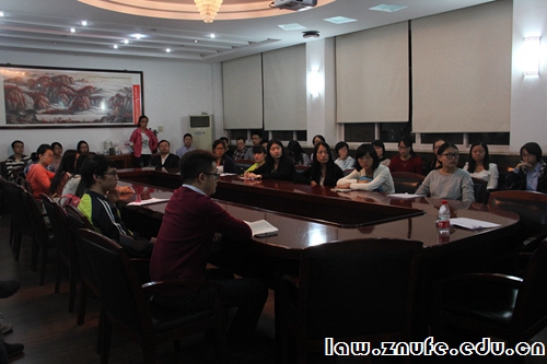 在讲授公司法的基本特征时,马丁教授先首先简要阐述了公司法的起源与发展,他指出公司法不仅处理人与人的关系,还要处理人与公司的关系。公司法与民法最大的区别就在于,公司法是为了共同盈利、创造利益,而民法则仅为交换利益。谈到公司的类型,马丁教授以股份公司为例,着重讲述了corporation和company的区别。关于公司的特点,他认为人与公司相互独立,公司应有独立的人格,可与人一样签订合同、买卖货物。他还介绍,德国学者孔兹最先提出了公司的概念。公司就像一个人,有着不同的器官,由法律来承认公司的人格。而公司独立的法律人格,正是公司法的最大特征。