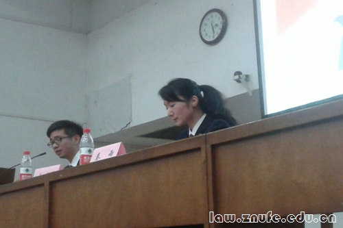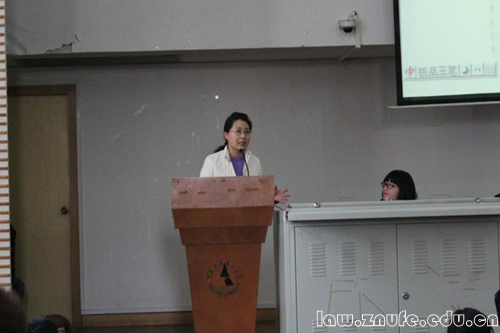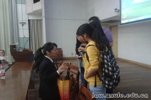秦雨检察官首先向同学们介绍了人民检察院的职权,秦科长运用自己制作的PPT,图文并茂地介绍了检察院的刑事侦查权、批准和决定逮捕权、公诉权、监督权等,让同学们更加清楚地了解检察院的职能。其次,秦科长结合自己工作实际中经办的未成年人犯罪的活生生的案例,深入浅出地向同学们介绍了目前青少年犯罪、犯案的现状,了解违反法律的严重后果。再而,秦科长根据自身感受,教导未来将走上法学道路的学子,要做一个温情的法律人。秦科长经历了“看山是山,看山不是山,看山还是山”三种境界,从对犯罪分子的同情到冷漠再回归温情的过程,启示我们将来要维系和谐稳定最基本、最根本的就是公平正义。最后,秦科长向我们展示了所获得的荣誉和鼓励,特别是“秦雨工作室”,主要负责大学生犯罪案件的起诉,因温情诉讼而闻名,很多人在她的教育感化下重获新生。她说成绩属于过去,将会继续忠于职守,勇于担当,继续体味着这份责任的神圣和厚重绵长。