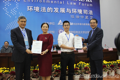 在以往的三届中达环境论坛上,共奖励“中达环境法学者”2位,“中达环境论坛青年学者奖”8位,颁发“优秀学位论文奖”9人次。青年学者奖两岸每年评选2名,我校高利红教授和温州大学钭晓东教授为今年该奖的获得者。