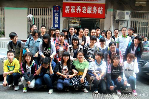 八点左右,志愿者们到达了敬老院,分组有序散开,走进老人们的小屋,为老人送上水果,和老人聊天,嘘寒问暖。志愿者们了解到,尽管敬老院里有专门的人员照料老人们的衣食起居,但老人们的精神层面却少有人关心。为帮老人们解闷,志愿者们自发地唱起《军中绿花》、《让我们荡起双桨》等脍炙人口的歌曲。随后,志愿者们为老人表演事先准备的节目,老人们频频鼓掌,现场气氛活跃。虽然因年事已高,老人们不能听清全部内容,但脸上都洋溢着笑容,短暂的热闹也为他们赶去了些许生活中的烦闷。有些老人卧病在床,行动不便,志愿者们便贴心地为老人剪指甲、打热水、按摩腿脚。老人们虽然身体健康情况不尽如人意,但是心态乐观积极。在一个房间里,志愿者们陪一位长期卧床的老人拉家常。老人讲起她的女儿,慈祥地说:“我有一个女儿,我把你们也当成是我的女儿。”