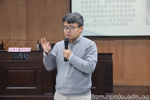张青波副教授在评议中提到西方福利型政府对行政机关的授权,询问是否能将控制给付行政的途径用来控制风险行政。同时张青波副教授就传统行政法的发展和跨学科方法的应用提出了自己的困惑,戚建刚教授对此作出回应。