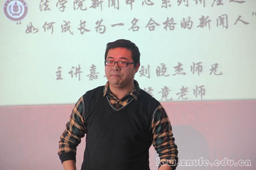 12月21日上午,法学院法治新闻人才试验班系列培训第二课于文治六楼会议室开讲。我校优秀校友、《楚天金报》首席经济记者刘晓杰应邀授课,讲授“如何成长为一个优秀的新闻人”。新闻中心指导老师侯竟担任本次培训会主持。
