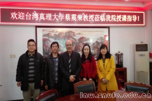 3月16日晚,台湾真理大学行政法学蔡震荣教授在文治楼六楼会议室作主题为“为权利而抗争”的学术报告,宪法与行政法学系杨勇萍副教授担任活动主持人,宪法与行政法学系方世荣教授、张青波副教授、江登琴副教授、曾祥明老师等参与本次学术交流活动。