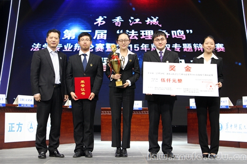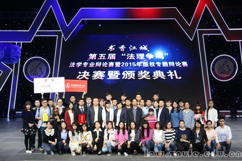 4月26日下午,第五届“法理争鸣”——法学专业辩论赛暨2015年版权专题辩论赛决赛暨颁奖典礼于武汉教育电视台演播厅落下帷幕。